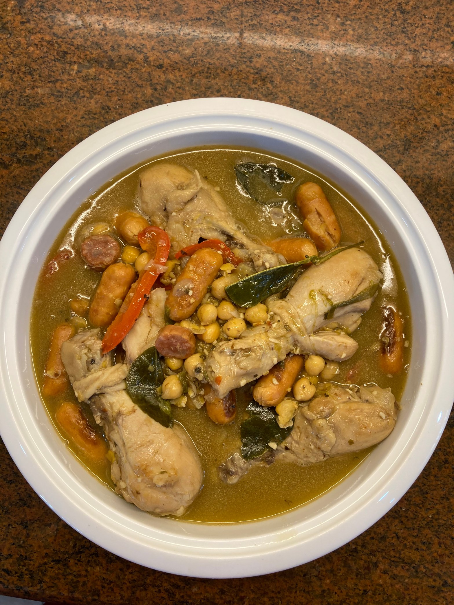 The end result was a zesty stew. The lime-leaf is more fragrant than bay leaf.