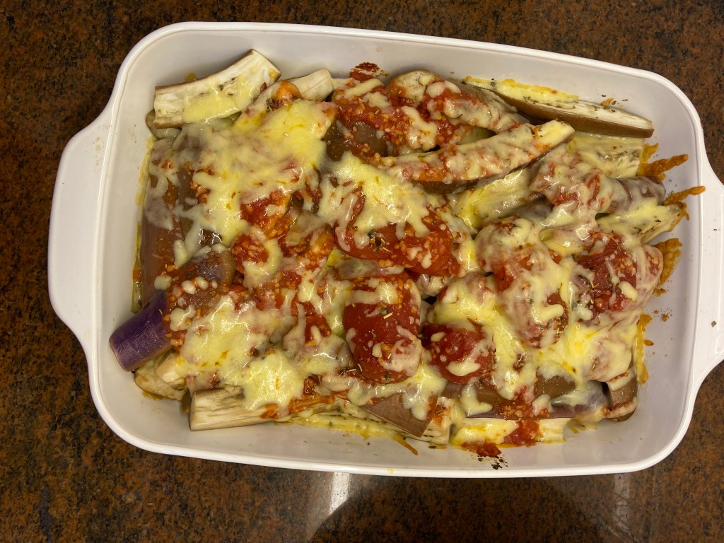 You can also leave out the cheese and just bake the eggplant with the tomato sauce.