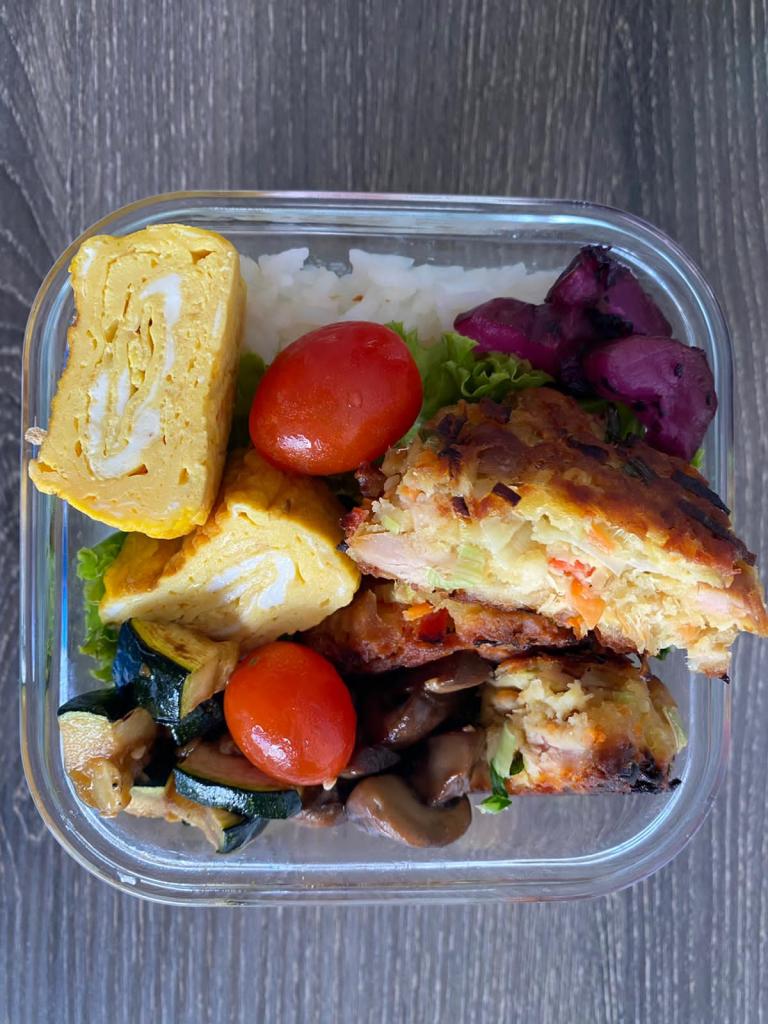 Val also revealed what she had in her lunch box on Good Friday: Tuna patties, butter-soy sauce mushrooms, grilled zucchini in ginger-sesame dressing, tamagoyaki and Japanese shiso cucumber pickles.