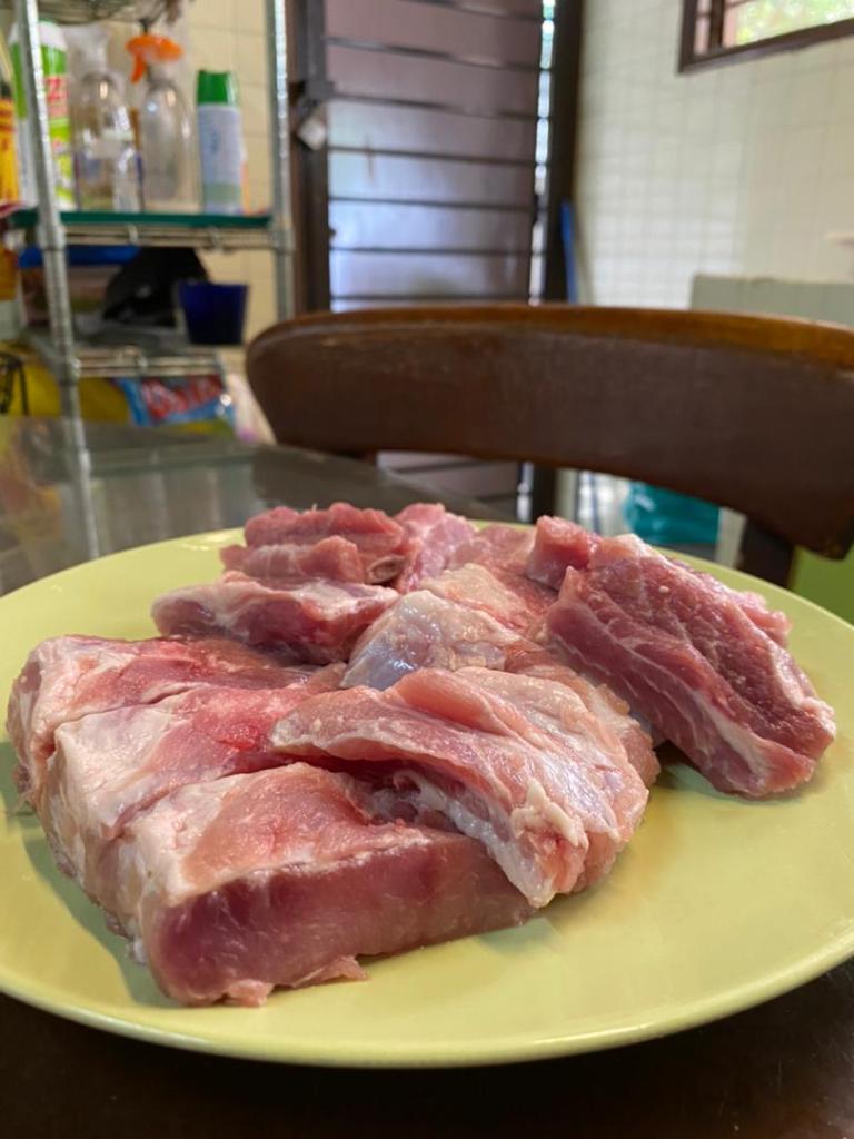 We have only used pork ribs for this dish, alternating between back ribs or spare ribs.