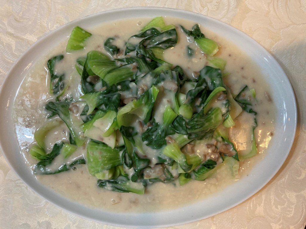 Chinese drunken chicken is served as a cold dish. It’s good to remove it from the fridge about 15 minutes before serving. Contrast makes a meal more interesting. A hot vegetable soup goes well with this cold meat dish, or a hot green vegetable dish. A simple green vegetable dish like blanched Shanghai greens with cream of mushroom (from a can of soup) is a good match.