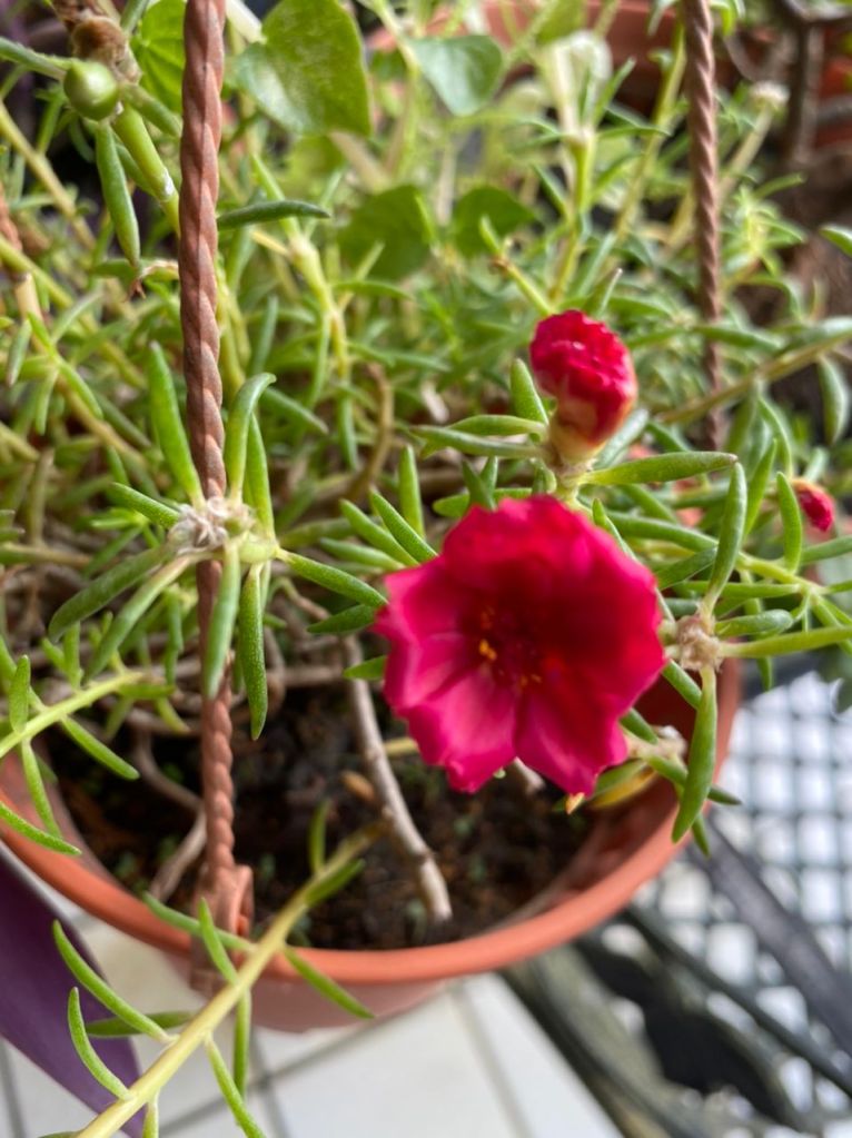 Today, I have 7 different coloured blooms at home. Some have been repotted into bigger pots while others have been left hanging on the thin beams of the awning at the front porch.