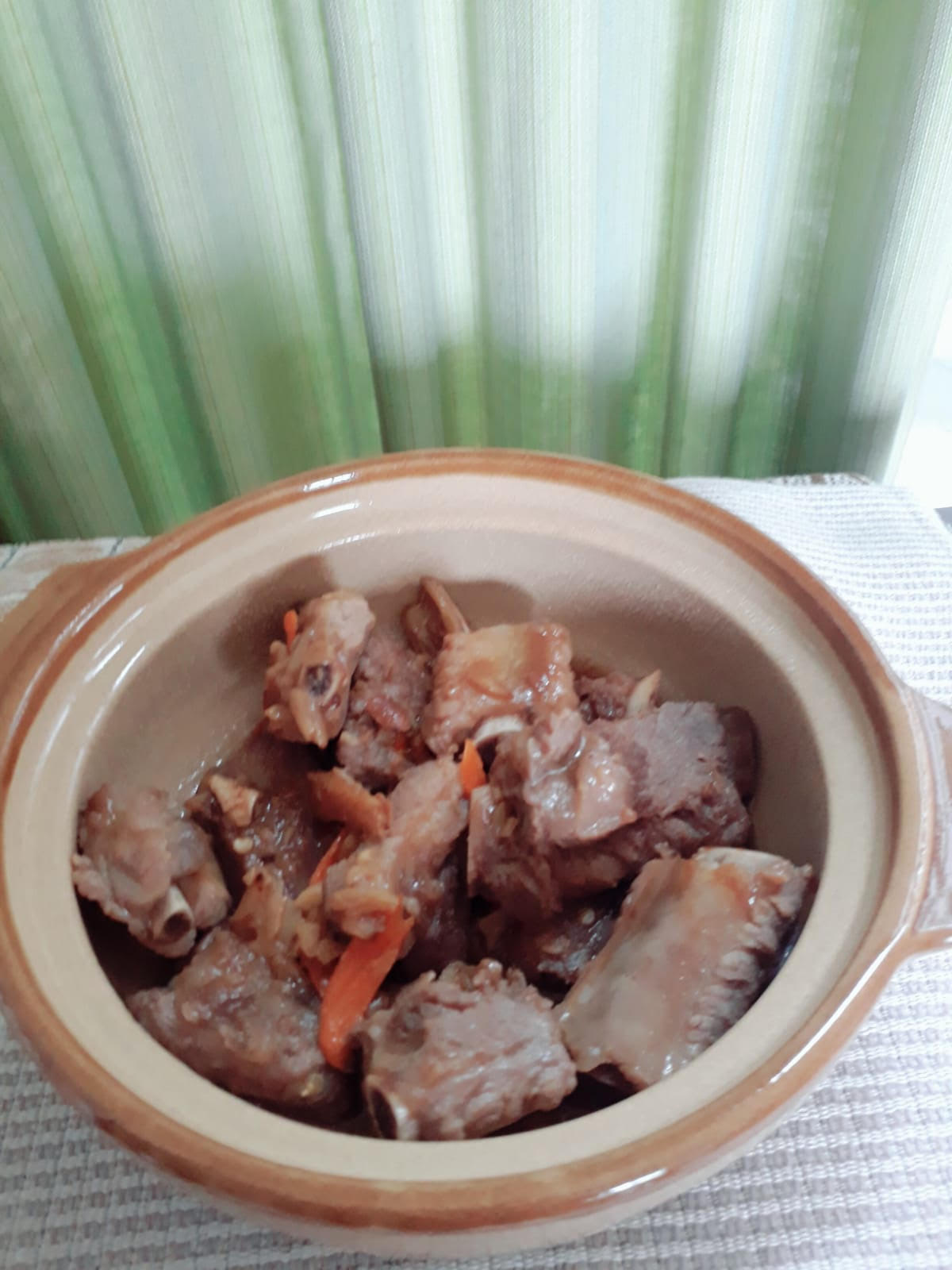 P’Pew, my friend in Bangkok, sent a photo of the braised pork spare ribs in soy bean paste dish which P’ Pad, her sister, cooked. She said it was yummy (aroy in Thai, mak mak means very) and it didn’t take long to cook. I am always looking for recipes of dishes which don’t take long to cook, so I immediately asked if I could have the recipe. I am very grateful that P’Pew and P’Pad are always very kind to me.