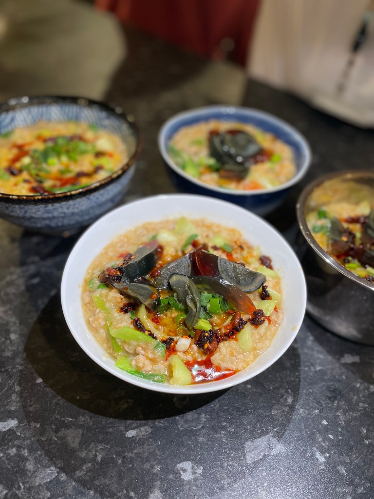 Another meal that was inspired by our mothers’ kitchens was this minced pork porridge topped with century egg (or pei tan). The pungent smell and bizarre appearance of century eggs have always given me the impression that only a handful of people can enjoy this delicacy… but my friends shared their excitement when I suggested this dish, possibly reminding them of the piping hot bowls of rice porridge served in Singapore hawker centres and the nostalgic taste of home.