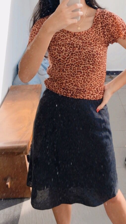 Aside from the dresses, I have altered some second hand pieces that I found in thrift shops. This leopard print dress was not flattering on me, so I decided to cut the skirt to knee length, and used the extra material to sew sleeves on. Now it can be worn as a top or a mid length dress. This outfit cost $10.