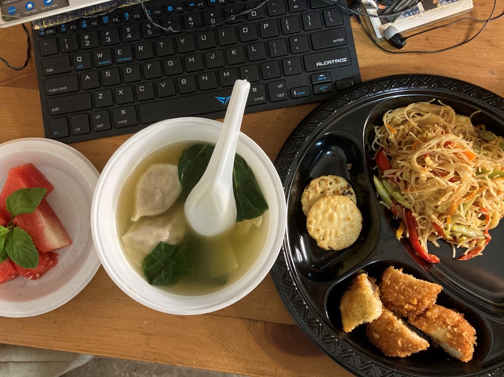 Meals became a crucial part of the recovery process. Each one looked forward to the surprise on the sick tray left outside their room. Everything had to be disposable. The supermarket plastic bags became part of the sanitation kit.