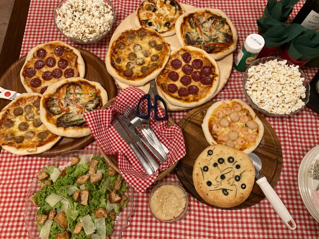 I was happy with the home-made pizzas we had for movie night at home last week. Elena said that when she was in Italy, it was a custom to have pizzas, beer and gelato every Saturday evening. Since pizza crusts are available in supermarkets, it’s easy to half-make your own pizzas, provided you have an oven. But there is nothing like home-made pizza crust and toppings.