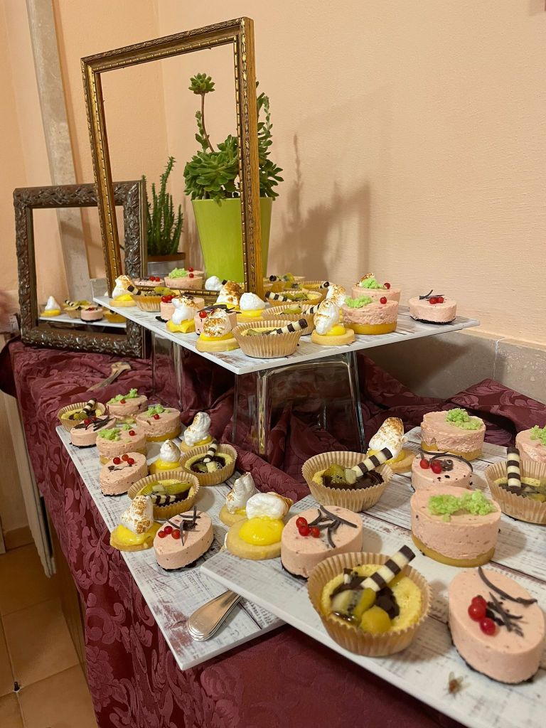 Many people have travelled abroad on holiday in the past few months, though many others are still hesitant to venture too far. I fall into the latter group. Carol went to Italy, and she sent photos of tapas (Spanish appetizers: a piece of bread with a meatball covering a drink, and dates with cream cheese) for the blog, along with photos of an enviable dessert buffet, all home-made.