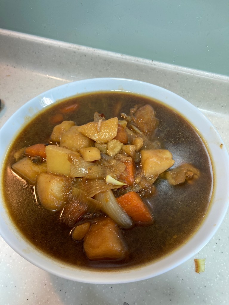 - chicken stew Chinese style (with onions, potatoes and carrots)