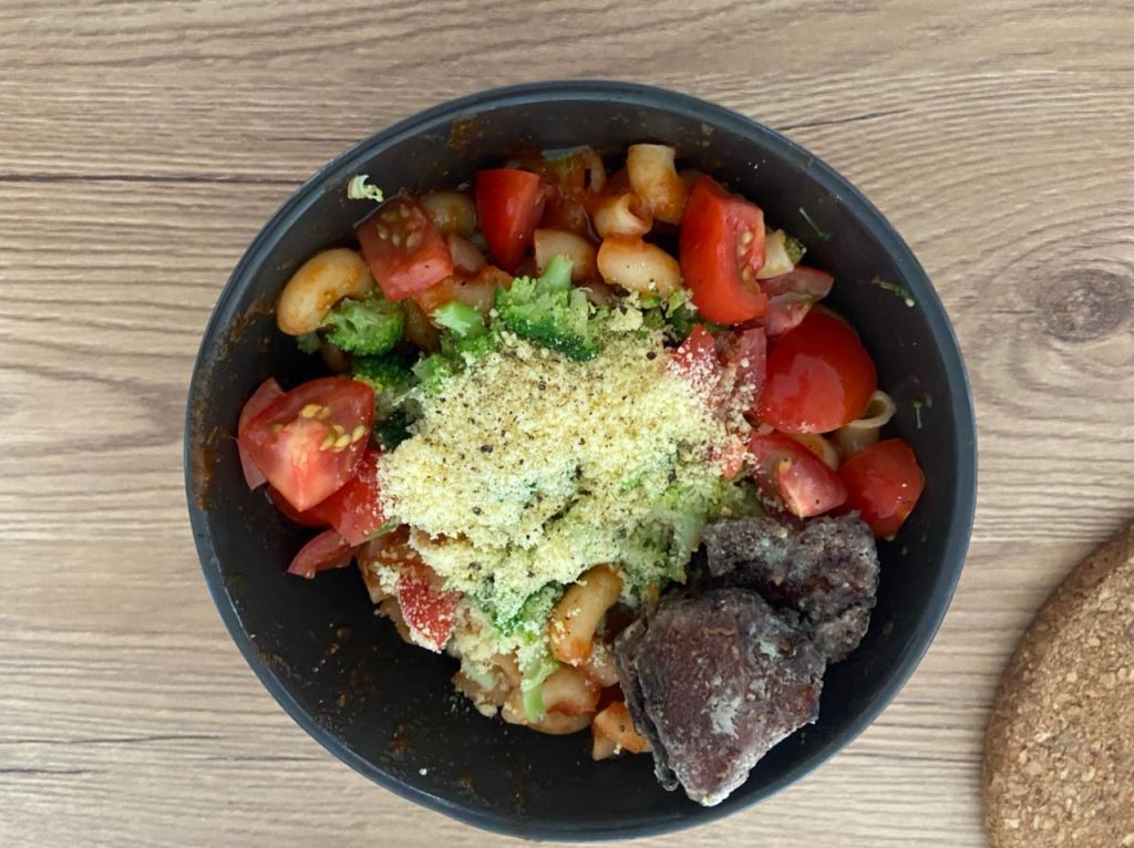 “Not very beautiful. I will be traveling today and until most of next week, so I had to use up my groceries in the fridge. 3 servings of macaroni + whatever vegetables and meat I had in the fridge.”Feisan