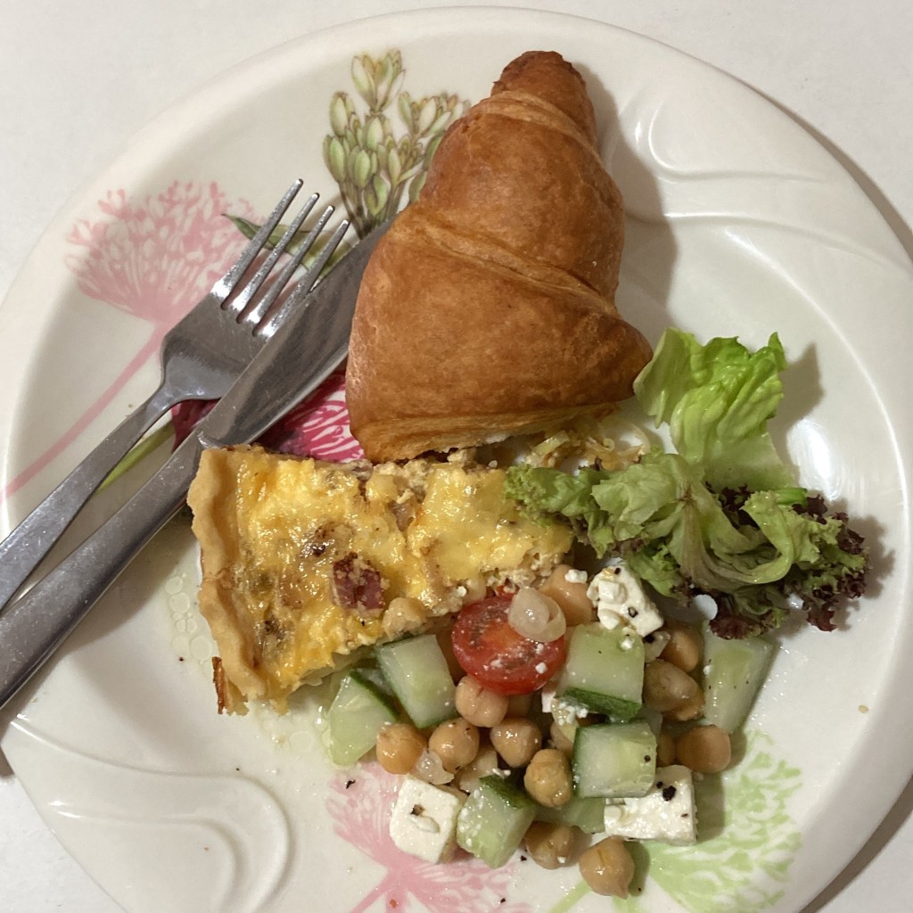 I recently had a nice light lunch of quiche, croissant and chickpea and cucumber salad. Elena’s pie crusts are the best!