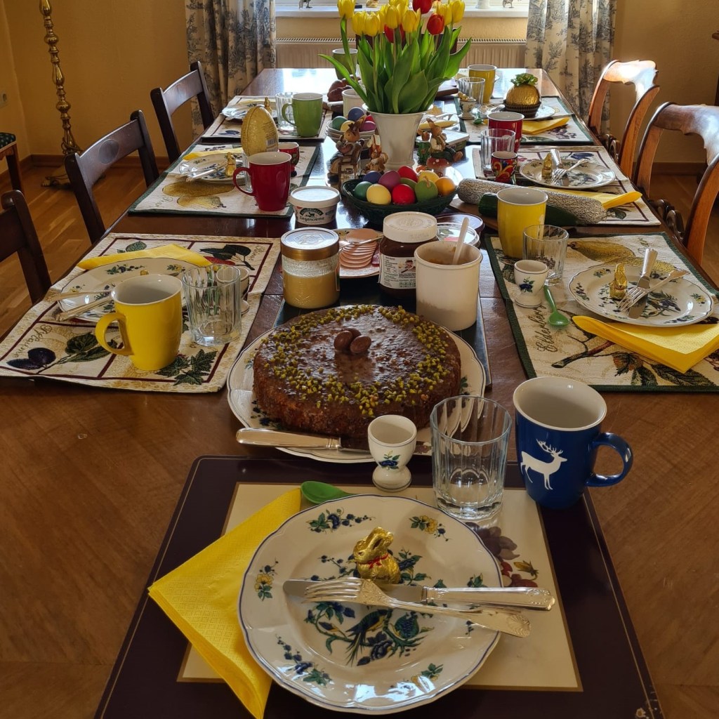 She baked a typical Easter bread called Osterzopf and a carrot cake (featured image). Easter brunch is a special occasion.