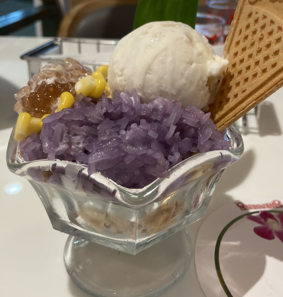 I have sweet memories of my recent trip to Thailand. I enjoyed catching up with my uncle Add, who is a retired professor. He has good jokes and loves ice cream. I went for my favourite coconut ice cream, it came with purple glutionous rice, corn and sago. I think it was a coconut sundae.