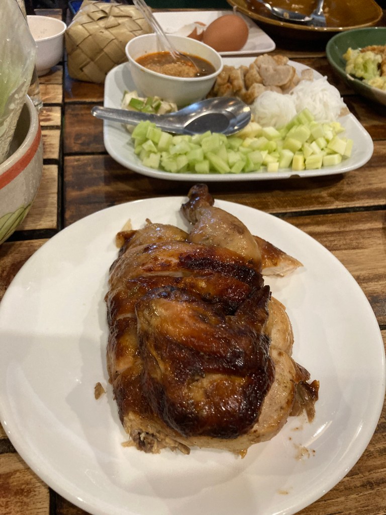 Visitors to Thailand might not know that Thai cuisine differs from region to region. For example, the cuisine of Chiangmai (which is in the North) is quite distinct from the typical Bangkok cuisine. The popular Chiangmai dishes include Khao soi (a curry noodle dish) and hang le (or hang lay) pork belly curry. During a recent trip to Chiangmai and Lampang, I had a taste of Northern cuisine. It was amazing! Not-so-spicy curries, grilled meats and lots of vegetables.