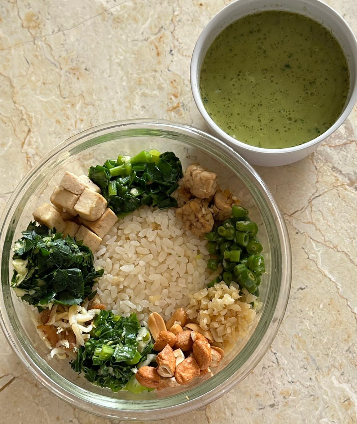 Other than that, lei cha can be made with whatever vegetables you have on hand. Cabbage, Choy sum, daun katuk (known as sayur manis or ma ni cai in Singapore). Tofu and tempeh are good sources of protein, along with some extra nuts, dried shrimp and anchovies for texture. The vegetarian nature of this dish also makes lei cha a good option for meatless Fridays.