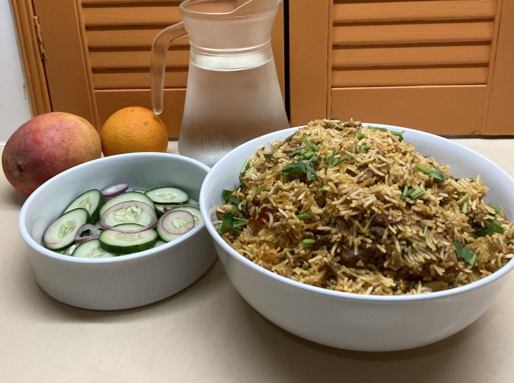 I always remember a former colleague when I think of nasi biryani. We used to go to a roti prata shop near the office for lunch on some days. If it was a Friday, I would have roti prata with a non-meat curry gravy, while she would have nasi biryani. She explained that nasi biryani is a special dish that is served on Fridays, which is a holy day for Muslims, like Sunday is for Christians. She explained how the meat is cooked with the rice and spices which makes the rice is so flavourful.