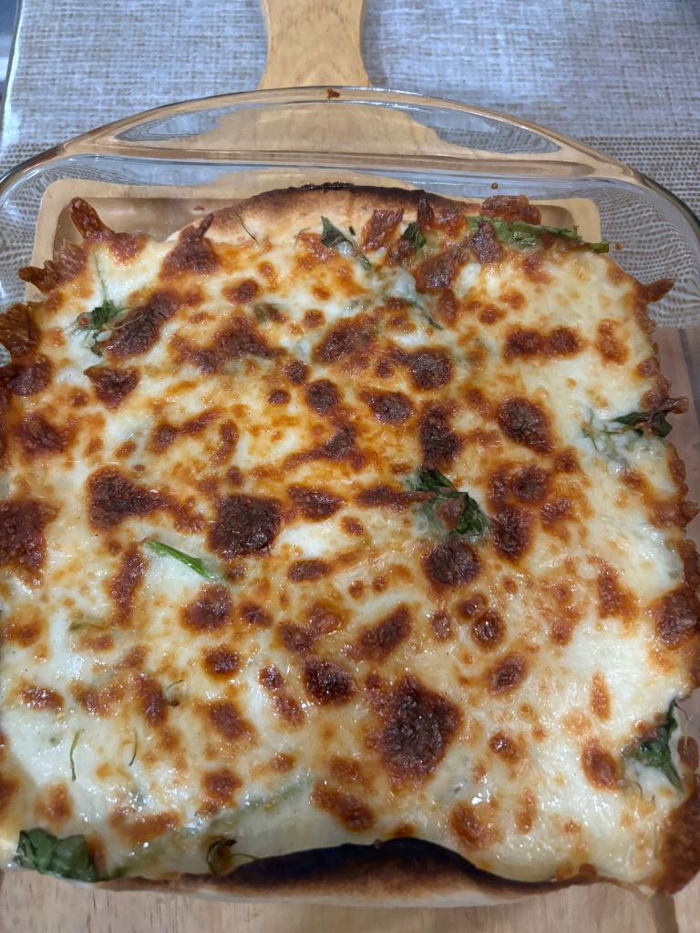 I just came from work and thought of making something fast and fancy that is mostly out of pantry ingredients. Easy peasy pizza packed with fresh Spinach! The whole thing came together faster than a take-out.