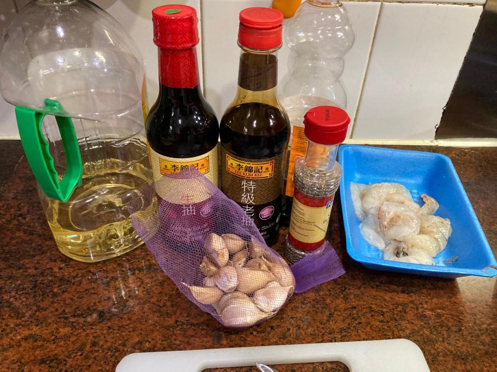 The type of ingredients distinguishes the simple staple fried rice dish from the celebration fried rice dish. The simple fried rice is often delicious, but hard to repeat when it is made from leftovers. There are many variations and adaptations of fried rice. My mother told me over lunch that the garlic, egg, prawns and kai lan fried rice she cooked would be served with prik nam pla (chili padi in fish sauce) and lime juice as condiments in Thailand. I suddenly wished we had some lime in the fridge. It would have added a new flavour my lunch.