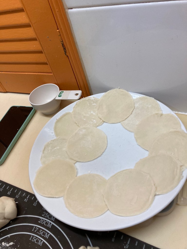 Dumpling-making requires good planning and teamwork. Jo and Henika did an excellent job with the dumpling skins. Therese helped with the wrapping. This is a labour intensive dish!