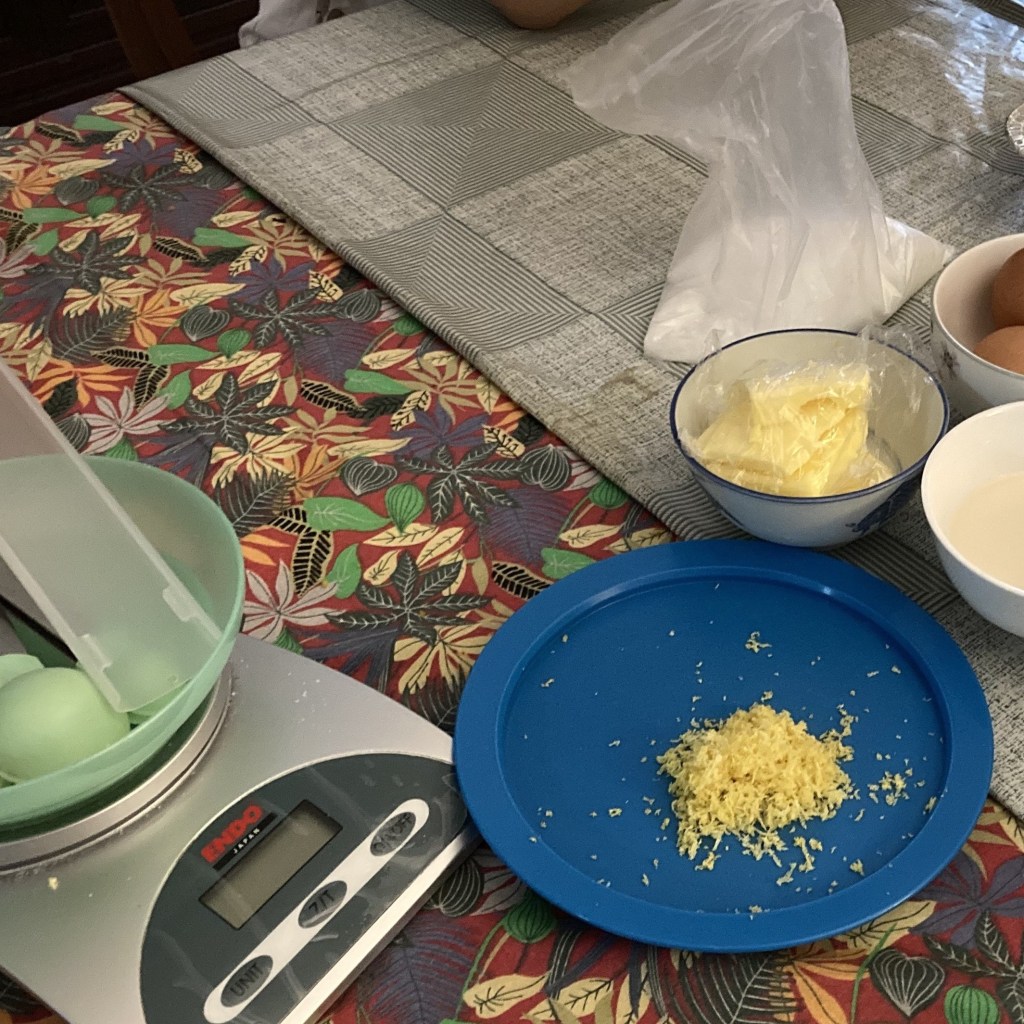 When we went on our second visit, Aunty Julie had some left-over lemon juice (which if I remember correctly, was from making lemon curd). Aunty Julie said she wanted to show us how to make the “easiest cake ever” – lemon cake! According to Aunty Julie, it’s easy because there are no steps to follow, just throw all the ingredients together, mix them in a mixer and bake.